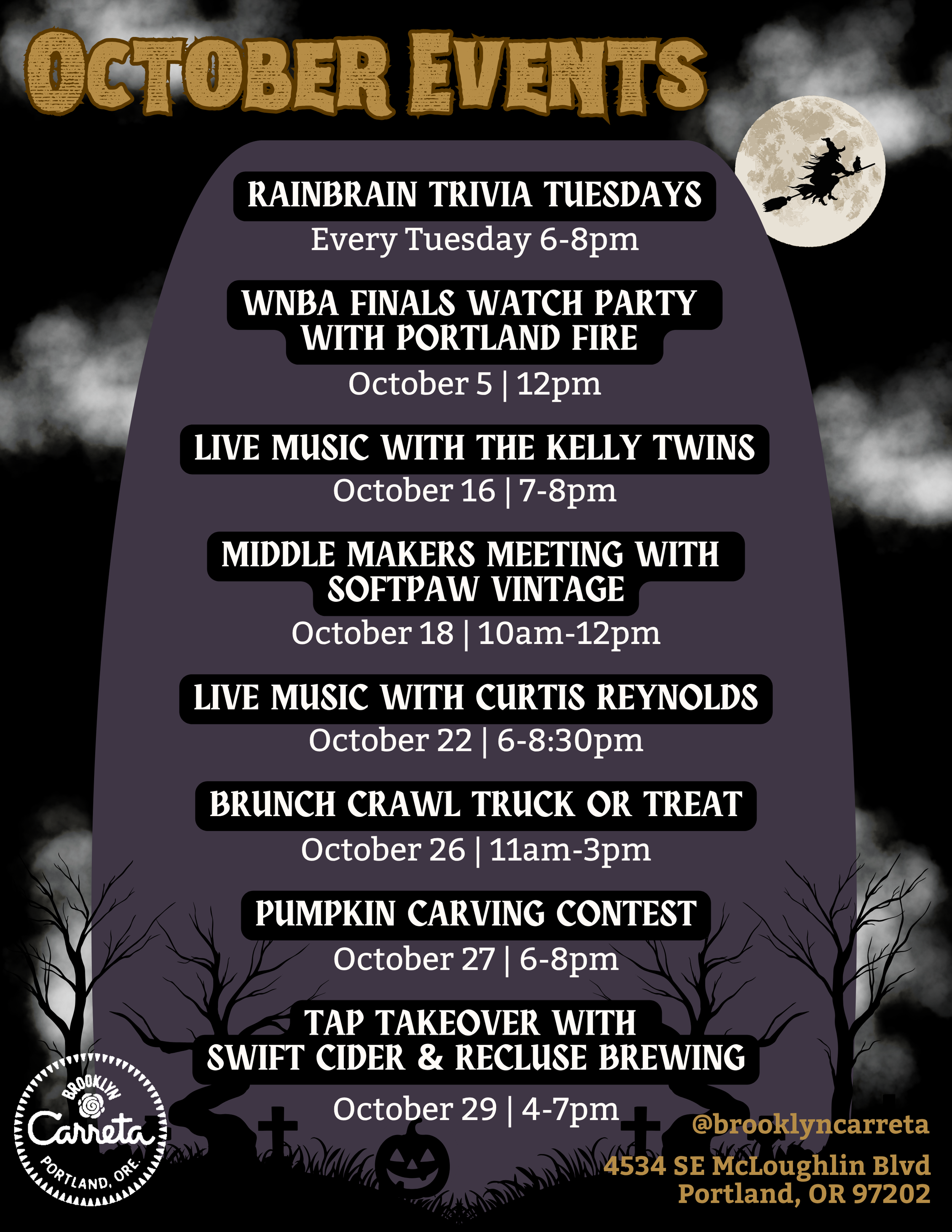 Join us for Trivia Night at Brooklyn Carreta! Come play trivia with one of Portland’s top quizmasters at our lively food cart pod and bar in Southeast Portland. It’s free to play, family-friendly, and open to all ages. Bring your team, grab a drink, and test your knowledge! 🧠🍻 🏆 Prizes for the winning team 📍Located near the Willamette River on the corner of SE Mcloughlin and Holgate.